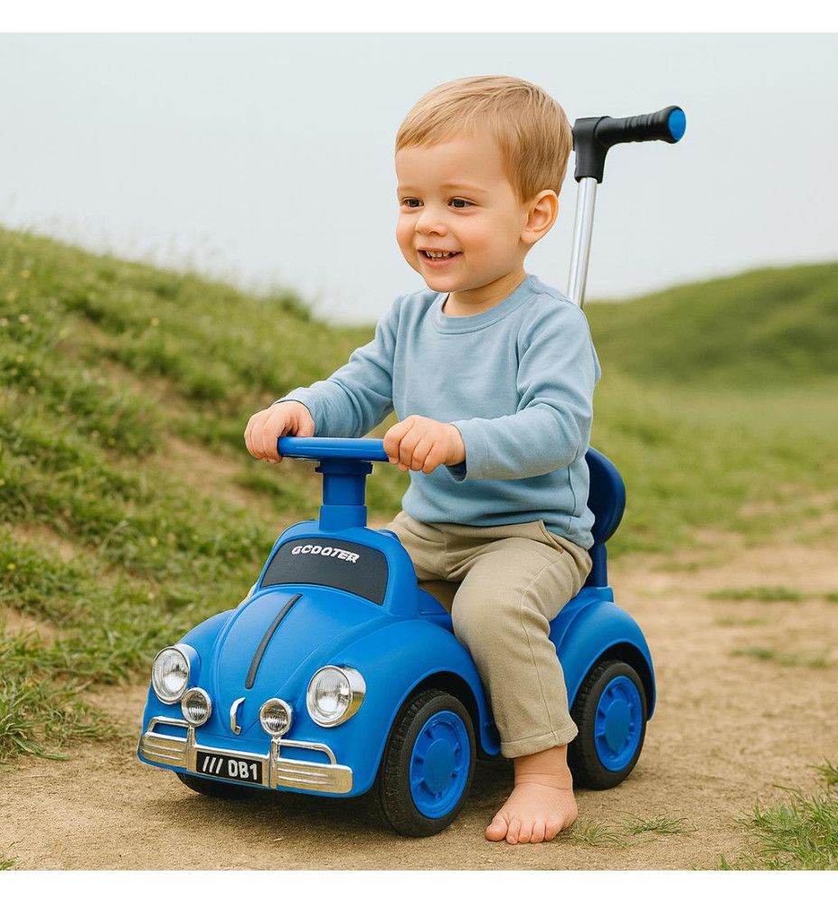 Dječiji autić-guralica sa modernim retro dizajnom. Stabilan, udoban i siguran, pomaže mališanima u razvoju motorike i pruža sate zabave. Pogodan za unutrašnju i spoljašnju upotrebu.