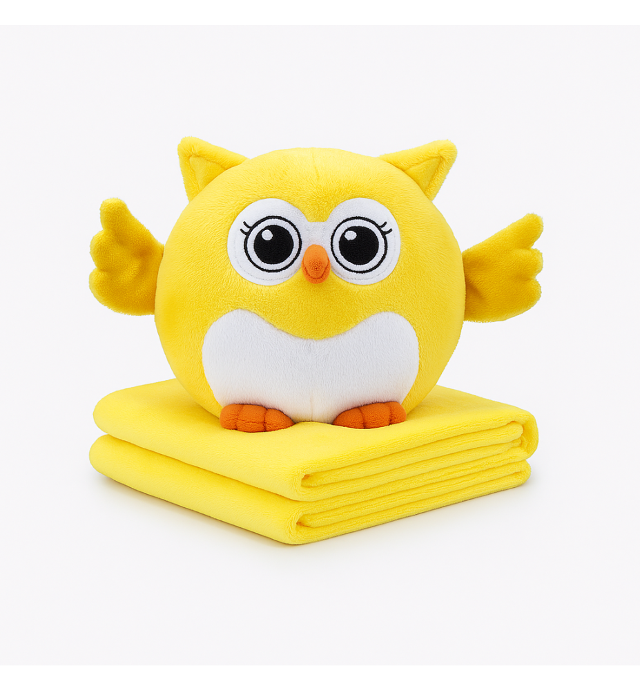 OwlHug Set je simpatičan set plišane žute sovice i mekane dekice, idealan za djecu i poklone. Napravljen od mekanog i kvalitetnog materijala, pruža udobnost, toplinu i veselje.