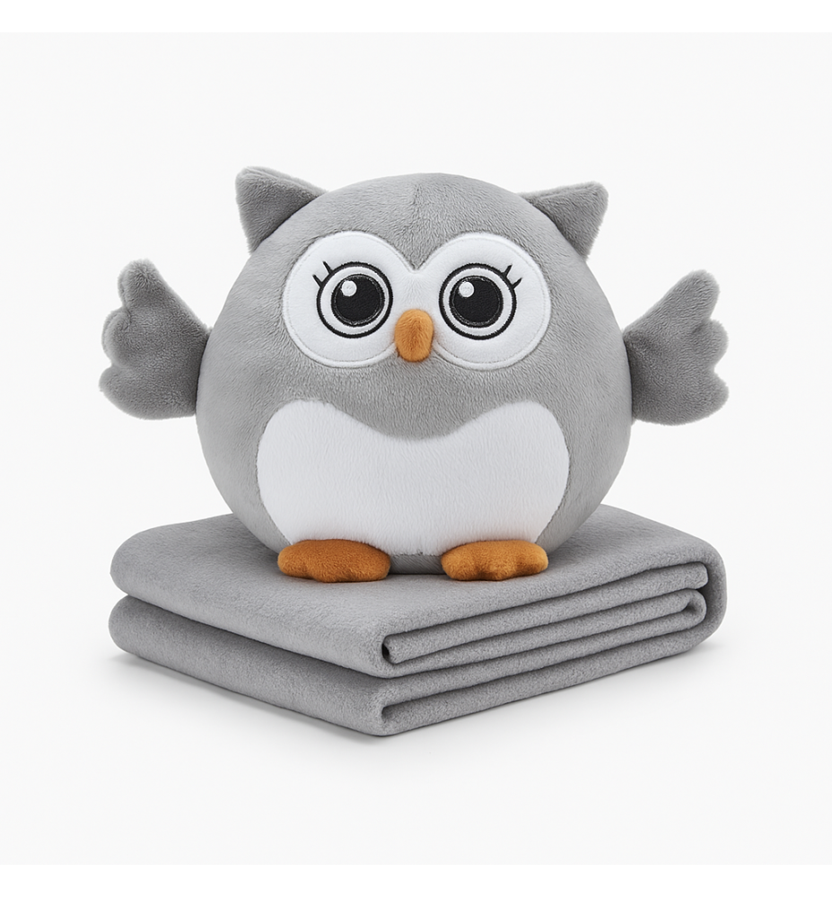OwlHug Set je simpatičan set plišane žute sovice i mekane dekice, idealan za djecu i poklone. Napravljen od mekanog i kvalitetnog materijala, pruža udobnost, toplinu i veselje.